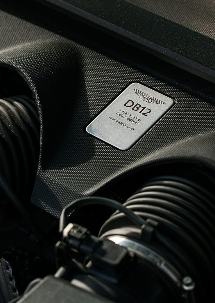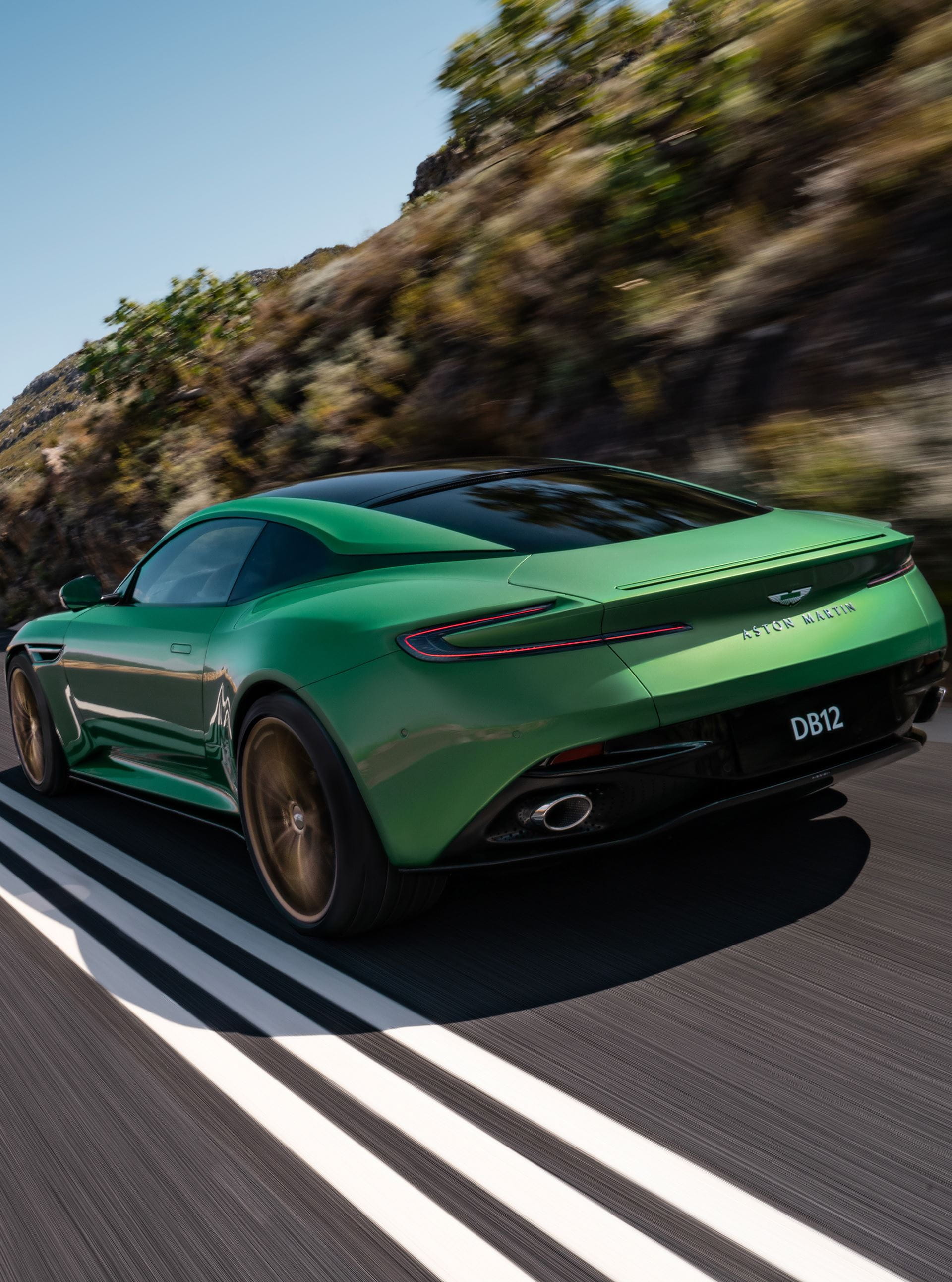 Pędzi do prędkości maksymalnej 325 km/h. Osiąga 100 km/h w 3,5 sekundy. Wyjątkowy, w pełni aluminiowy silnik V8 4.0 twin-turbo został gruntownie przeprojektowany dla DB12. Zmienione profile wałków rozrządu, zoptymalizowany stopień sprężania, większe turbosprężarki i zwiększone chłodzenie. Płynny, nieustępliwy, nieprzerwany w swoim przyspieszeniu – DB12 wynosi pojęcie „grand tourer” do klasy samochodów o nadludzkiej mocy.