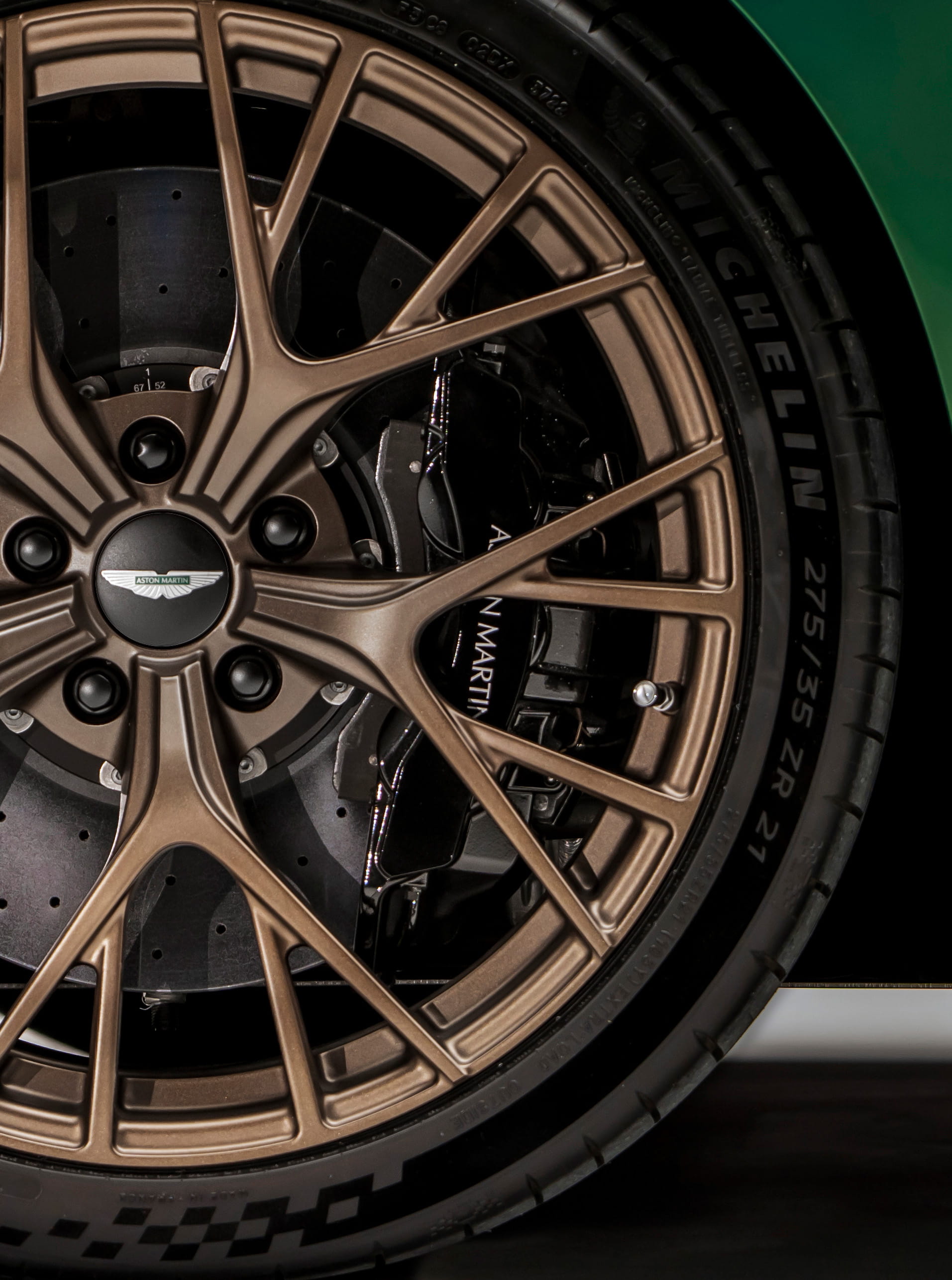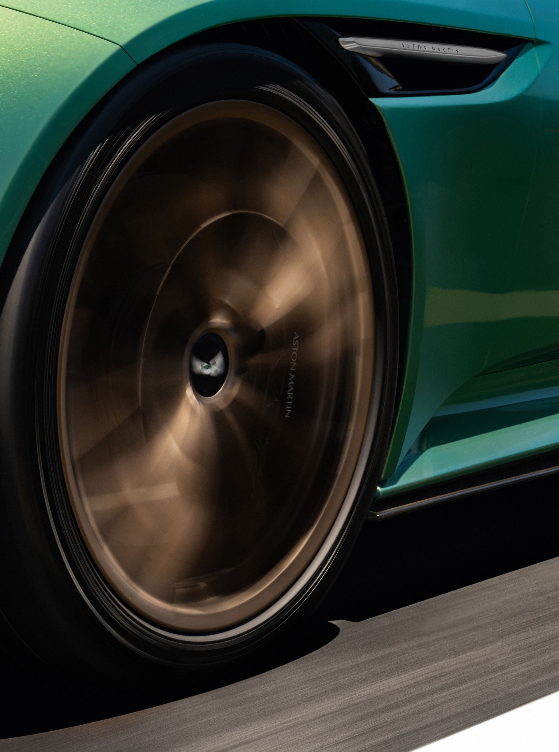 DB12 osadzony jest na nowych, 21-calowych kutych felgach z lekkiego stopu, zaprojektowanych, by perfekcyjnie współgrać z nawierzchnią. To debiut nowej opony Michelin Pilot Sport S 5 – stworzonej wspólnie z Michelin, by zapewnić maksymalną precyzję prowadzenia i błyskawiczną reakcję. Ręcznie opracowana mieszanka gwarantuje przyczepność zarówno na suchym, jak i mokrym asfalcie, a wkładki tłumiące hałas redukują dźwięk toczenia o 20%. Jeszcze więcej wyrafinowania. Jeszcze większy komfort.