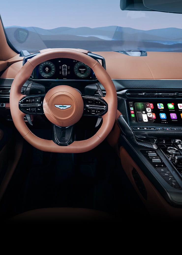 Nowa generacja CarPlay® łączy to, co najlepsze w Aston Martinie i w iPhonie – w pełni zintegrowane, spójne doświadczenie. Po uruchomieniu silnika CarPlay Ultra® działa równocześnie na centralnym ekranie i – po raz pierwszy – w zestawie wskaźników kierowcy. System prezentuje kluczowe informacje, takie jak prędkość, obroty silnika, poziom paliwa i aktualny bieg, a także pozwala sterować klimatyzacją, ogrzewaniem i systemami bezpieczeństwa. To światowy debiut technologii, która wyznacza nowy standard integracji, personalizacji i intuicyjnej kontroli w samochodach klasy GT.