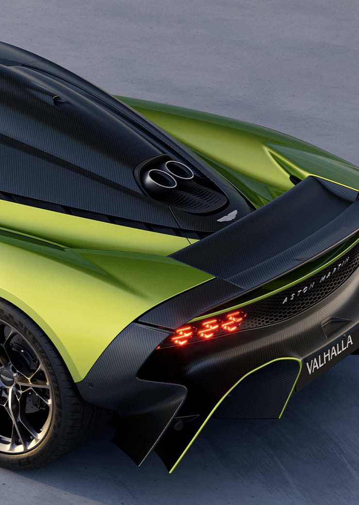 Rozbudowany system chłodzenia Valhalli odpowiada na ogromne wymagania termiczne wynikające z potężnej mocy jednostki napędowej. Inspirowane Formułą 1® lotki przy drzwiach i wyloty powietrza kierują przepływ wzdłuż rzeźbionego karbonowego nadwozia, prosto do tylnych chłodnic oleju.