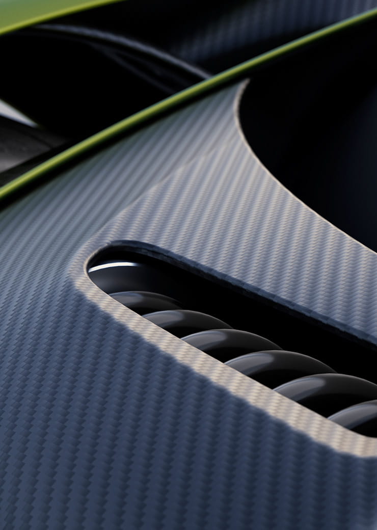 Każdy element aerodynamiczny Valhalli został zaprojektowany, by maksymalnie wykorzystać przepływ powietrza i wzmocnić osiągi oraz przyjemność z jazdy. Zintegrowane z bocznym progiem pięć generatorów wirów to rozwiązanie zaczerpnięte prosto z konstrukcji Formuły 1® – opracowane tak, by zwiększyć docisk w środkowej części auta, pomiędzy przednim a tylnym skrzydłem. Dzięki temu Valhalla pozostaje pewnie na drodze, a Ty – na idealnej linii wyścigowej.